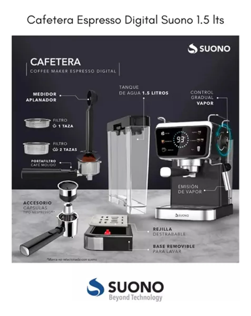 CAFETERA EXPRESSO SUONO DG 1.5 LTS C/CAPSULA HOG0202